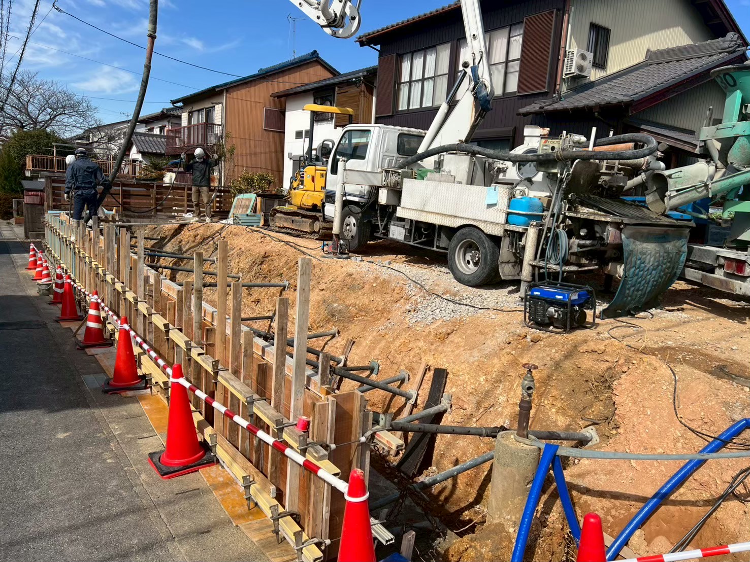 基礎は建物を何十年にもわたって支える重要な部分です。ワイズアシストでは、コンクリートの打設タイミングや養生期間の管理、アンカーボルト位置の確認など、後工程につながる精度にもこだわっています。解体工事や造成工事とあわせてご依頼いただくことで、敷地全体を見据えたバランスの良い基礎計画が可能になります。